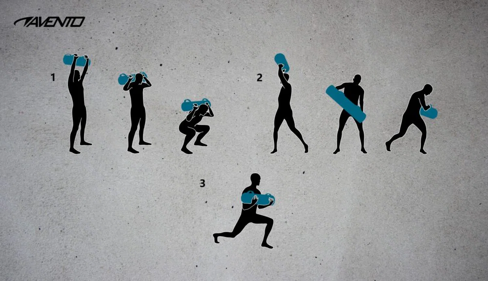 Η προπόνηση με ένα Σάκο Νερού είναι αρκετά πιο απαιτητική από ότι με ένα συμβατικό Power Bag, καθώς η αστάθεια του νερού στο εσωτερικό σημαίνει ότι διαρκώς ενεργοποιούνται οι μύες του κορμού για ισορροπία. Το βάρος προσαρμόζεται ανάλογα με το νερό έως και σε 20L/20kg.