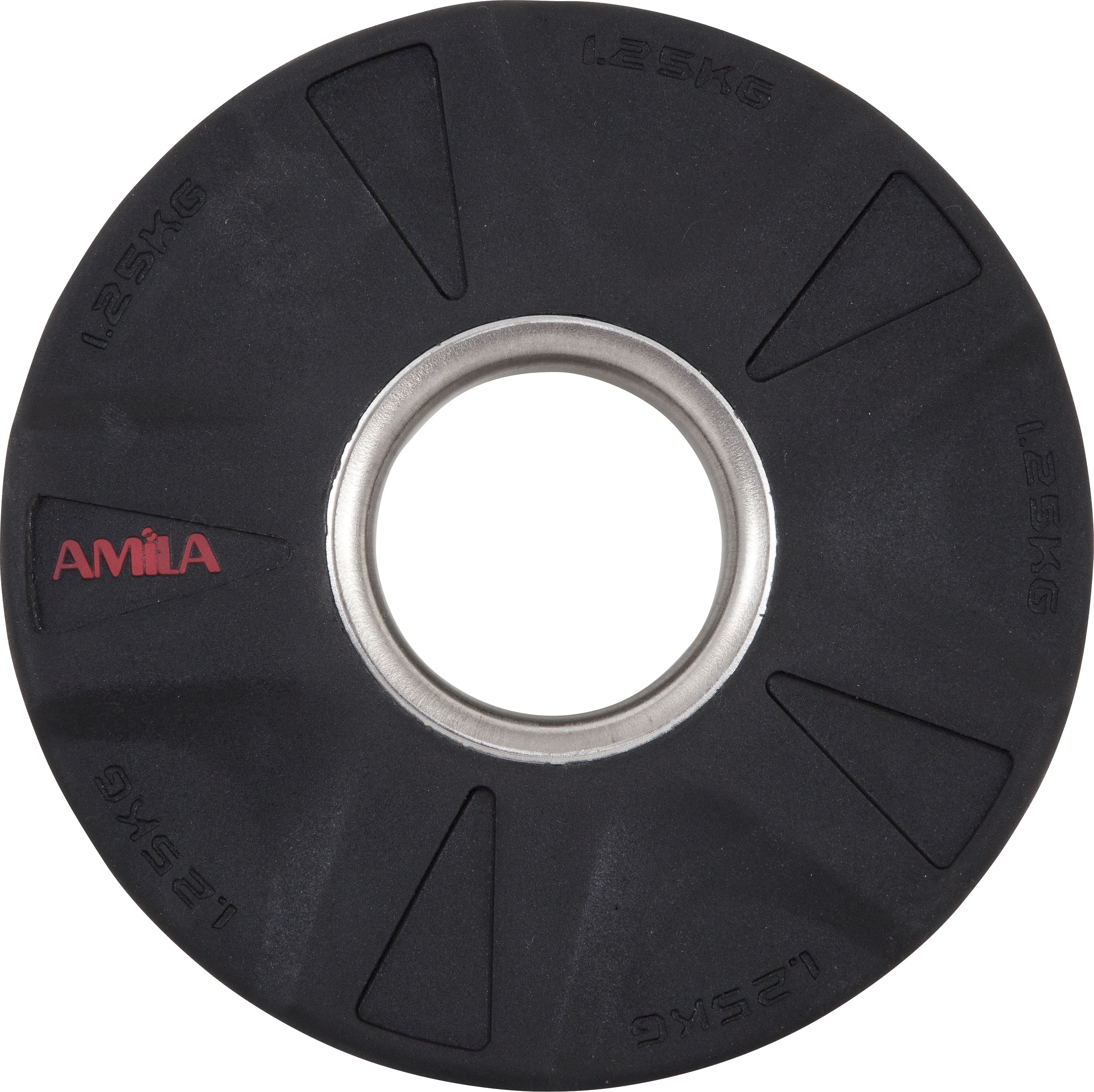 Τριάκτινοι ολυμπιακού τύπου δίσκοι με κορυφαία επένδυση TPU από την AMILA για μπάρες και αλτήρες διαμέτρου 50mm.