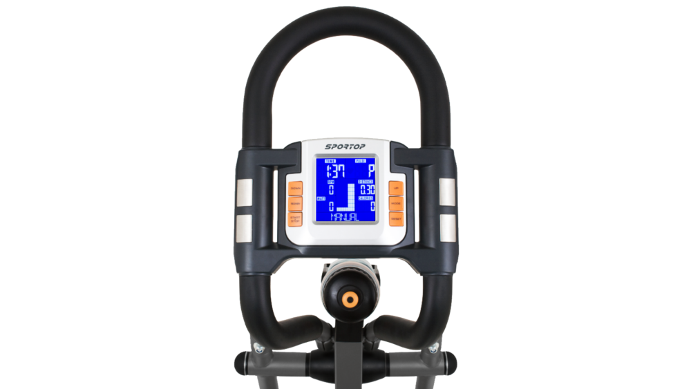 Το Ελλειπτικό Sportop E850P αποπνέει σύγχρονη αισθητική και εγγυάται κατασκευή κορυφαίας ποιότητας, με στιβαρό χαλύβδινο πλαίσιο που αντανακλάται στη σταθερή και ομαλή κίνηση του μηχανήματος. Προσφέρει δυναμικά προγράμματα προπόνησης, 16 επίπεδα αντίστασης και μία άνετη εργονομική θέση άσκησης για όλους τους χρήστες χάρη στη δυνατότητα ρύθμισης των πεντάλ σε 3 θέσεις.