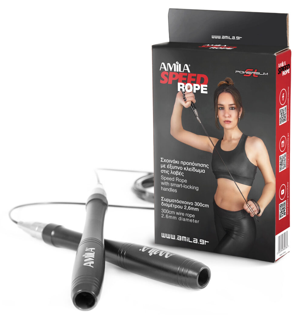 Speed Rope από την AMILA με υψηλής ποιότητας ρουλεμάν, λαβή αλουμινίου και το σύστημα μεταβολής μήκους SmartLock