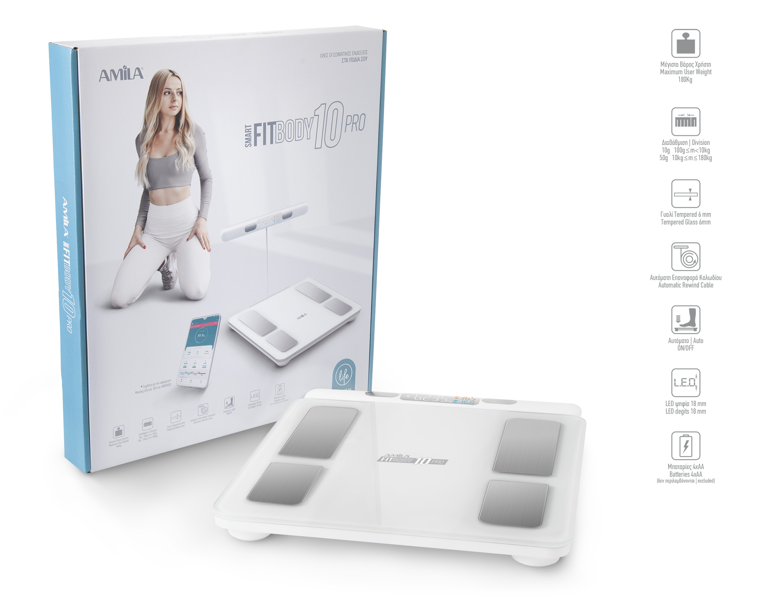 Ζυγαρία Smart με Λιπομέτρηση AMILA FITBODY 10 PRO